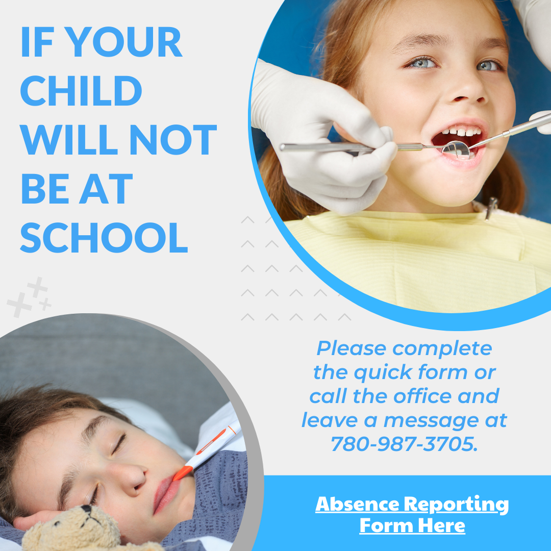 Thank you for taking the time to let us know that your child will not be at school. Please complete this quick form, or call the office and leave a message at 780-987-3705.