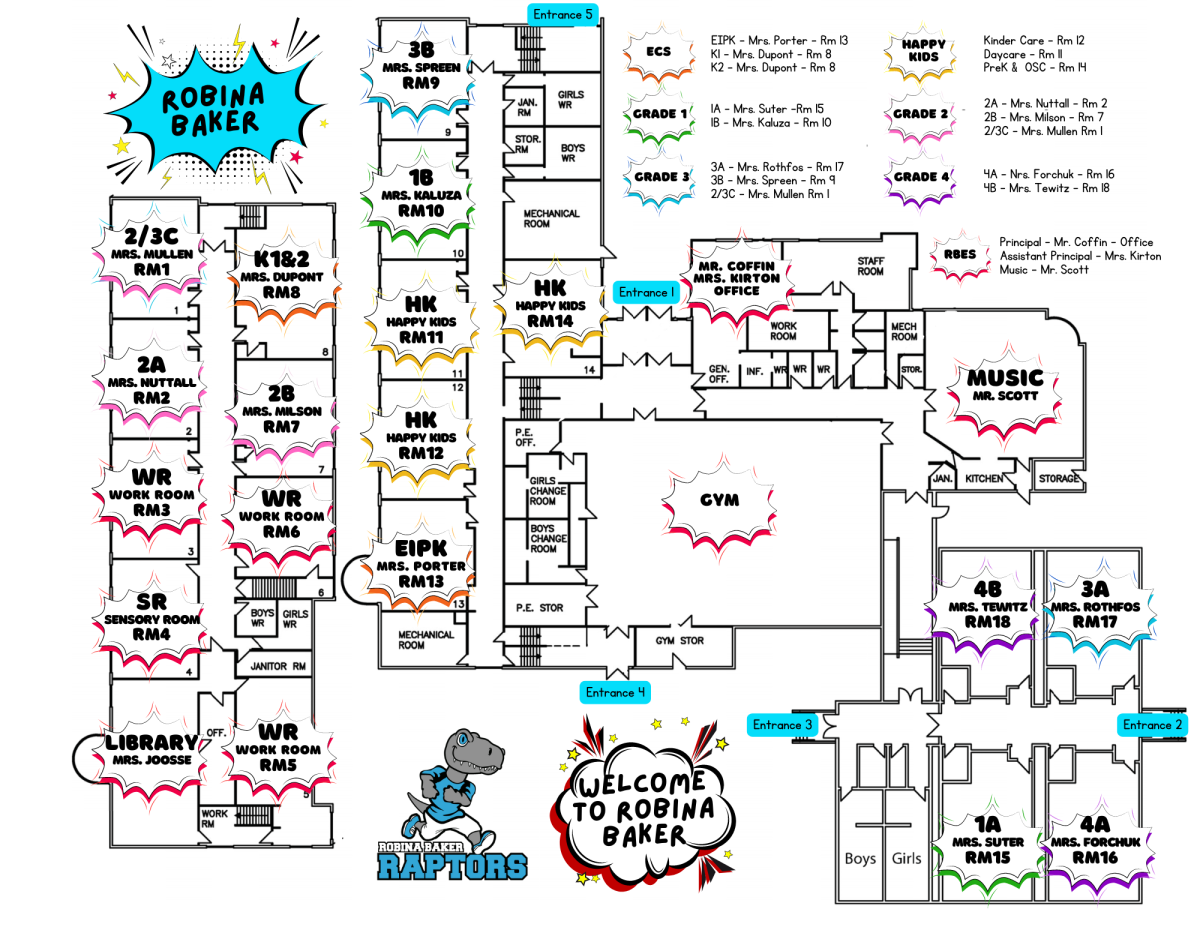 Kindergarten will utilize Entrance 5 (Front of the School). Mrs. Dupont will be waiting at the door at 8:25. This is also where Mrs. Dupont will release students at the end of the day.