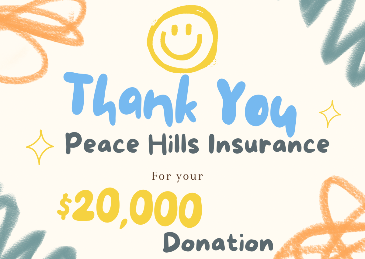 Thanks to our lead at Drake Insurance Agency – Devon, we were able to secure a TWENTY THOUSAND DOLLAR donation from Peace Hills Insurance!
