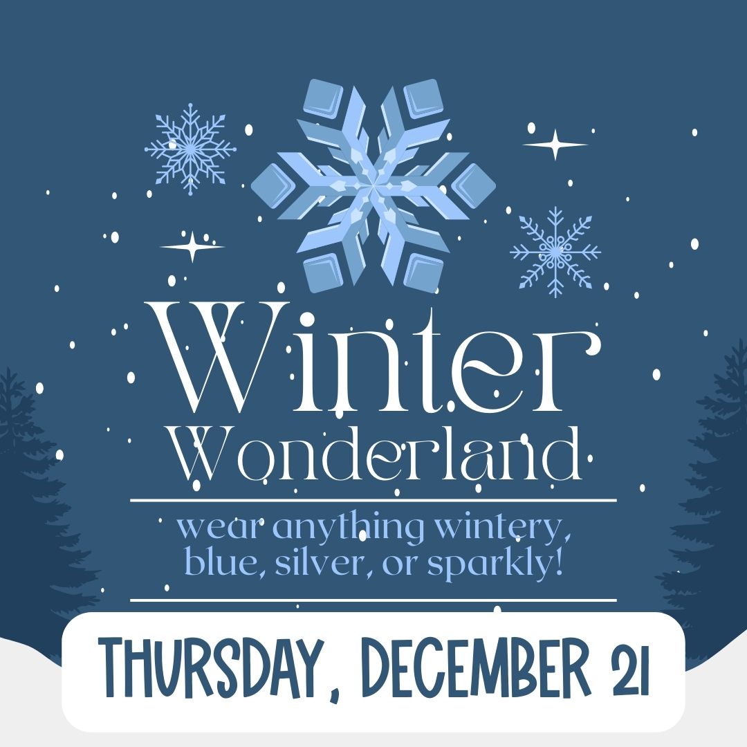 December 21 – Winter Wonderland – Wear blue, white or sparkly
