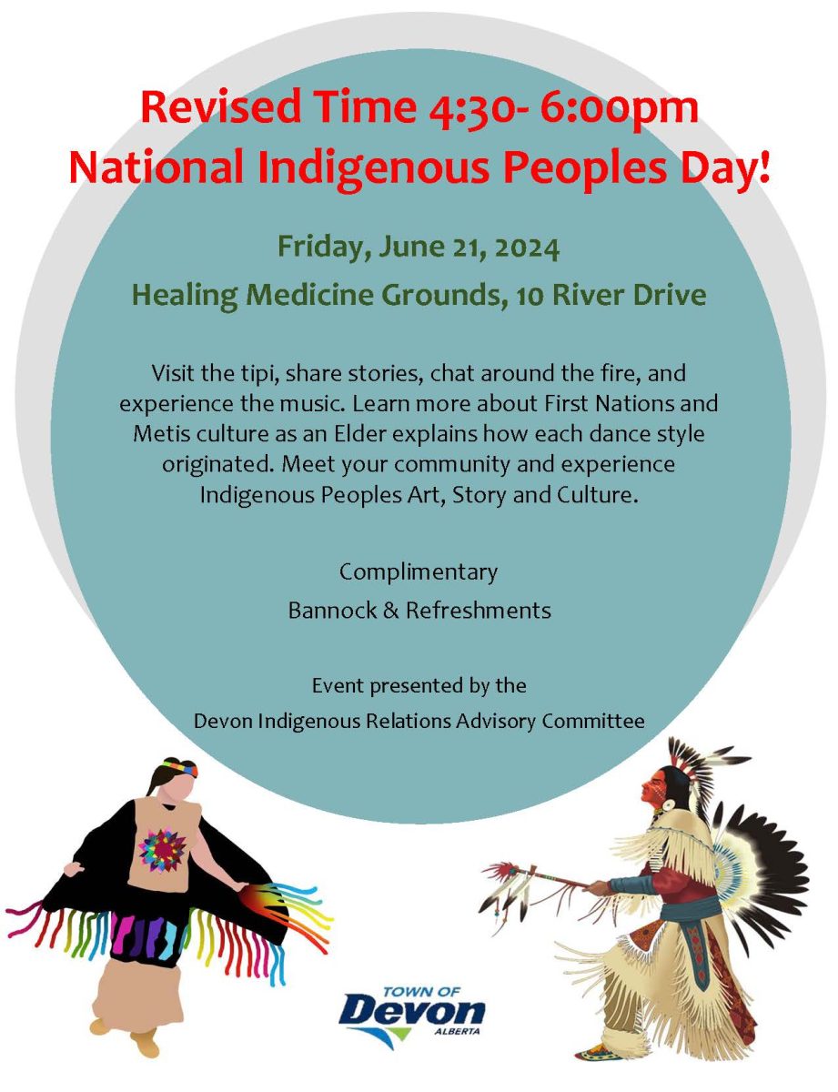 National Indigenous People’s Day was today! We welcomed Phyllis Sinclair who shared stories and song alongside Mr. Scott all day today. It was wonderful learning. The Town of Devon is hosting a very special event this afternoon/evening. Please check it out!