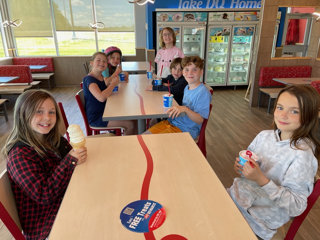 The winners of the Spell-a-thon prize of going to DQ with Mrs. Forchuk & Mrs. Tewitz were surprised with more than just an ice cream treat! Along the way, they were stopped by a Peace Officer who gave each one of the students a ticket! The officer caught them each doing something good and they received a Safe Riding ticket that they can trade in for a free slush at the Circle K. If that wasn’t enough excitement they also met the owner of Pigtopia who let the kids see a goat and a couple of turtles she had with her. The students had a great time!
