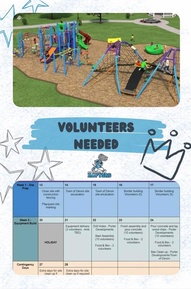 We are looking for volunteers to help us with unloading and assembling our new playground. Please provide your information and sign up below. Volunteers MUST be over 18.