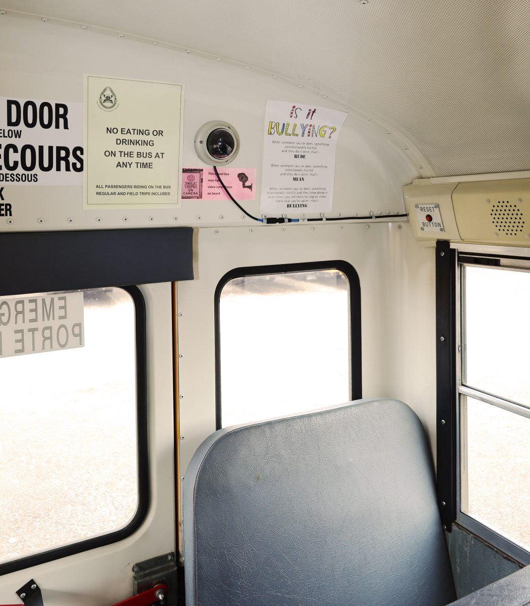 All of our regular buses are equipped with cameras that capture license plate numbers. Any vehicle passing a school bus with flashing red lights and an activated stop sign will be reported to the RCMP, with video footage provided as needed.